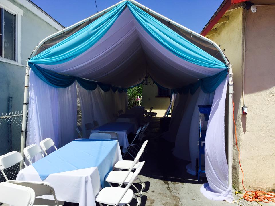 Our 10x90 tents comes with full drape “choose from our wide selection of colors”, Chandelier , 100ft extension cord and all 4 walls with windows or without please add in the description and ask, without windows or delivery guys would just take sides with windows, also let us know if there’s any special flooring equipment if needed this tents fits approximately 135 ppl without any furnisher or fits 18 rectangular 6ft tables with 6-8 chairs per table comfortable or 18 rectangular 8ft table with 8-10 chairs per table comfortable or 9 round 60” table with 6-8 chair comfortable or 9 round 72” table with 8-10 chairs comfortable please book your event on time to have your order ready and deliver a day before and pick up the next day if needed also available same date pick up schedule your event today weeks or months before your event after your order is confirm we will call you 2 days before your event to confirm your order and delivery 10% deposit to book please read refund information before thank you |